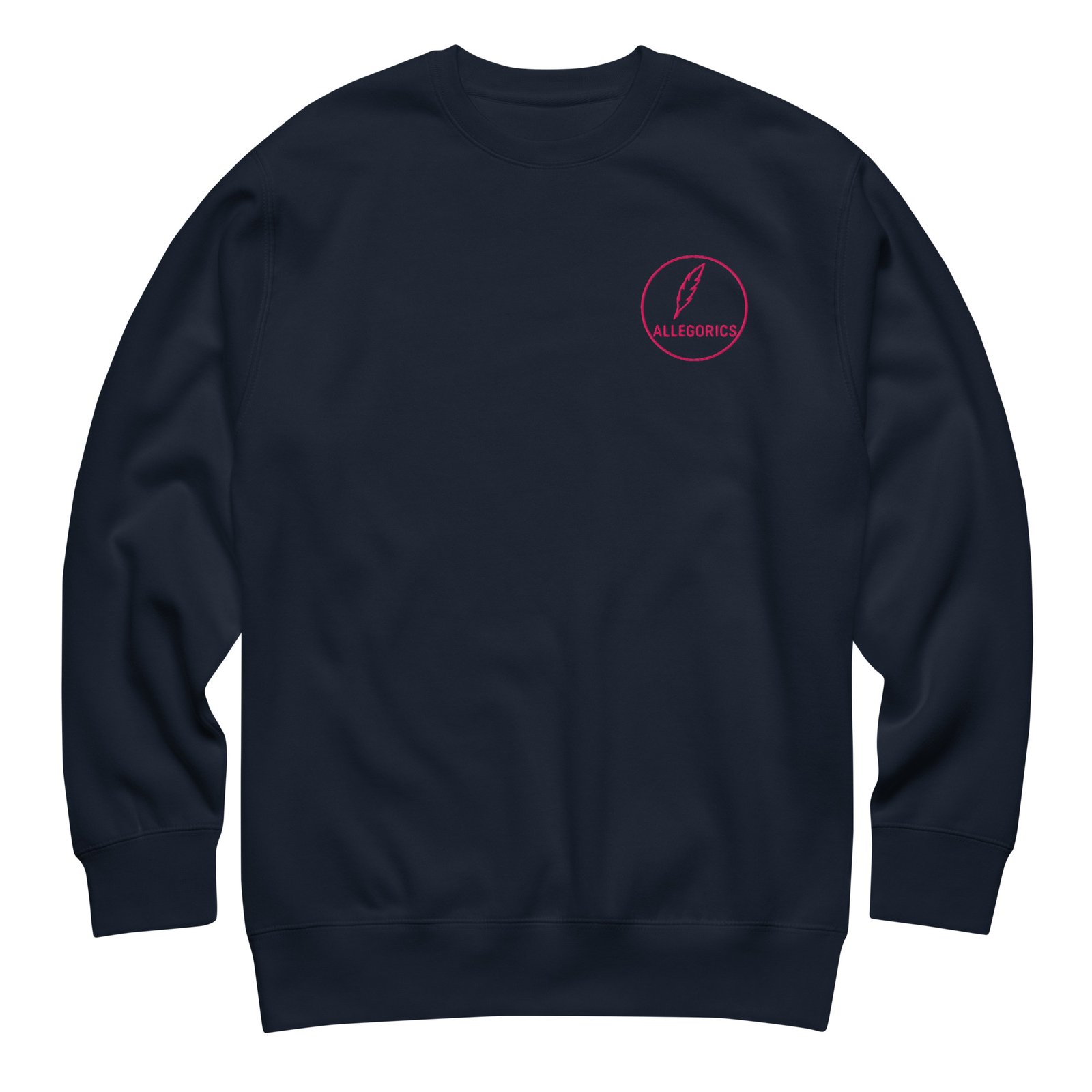Front (left chest): red embroidered “ALLEGORICS” logo