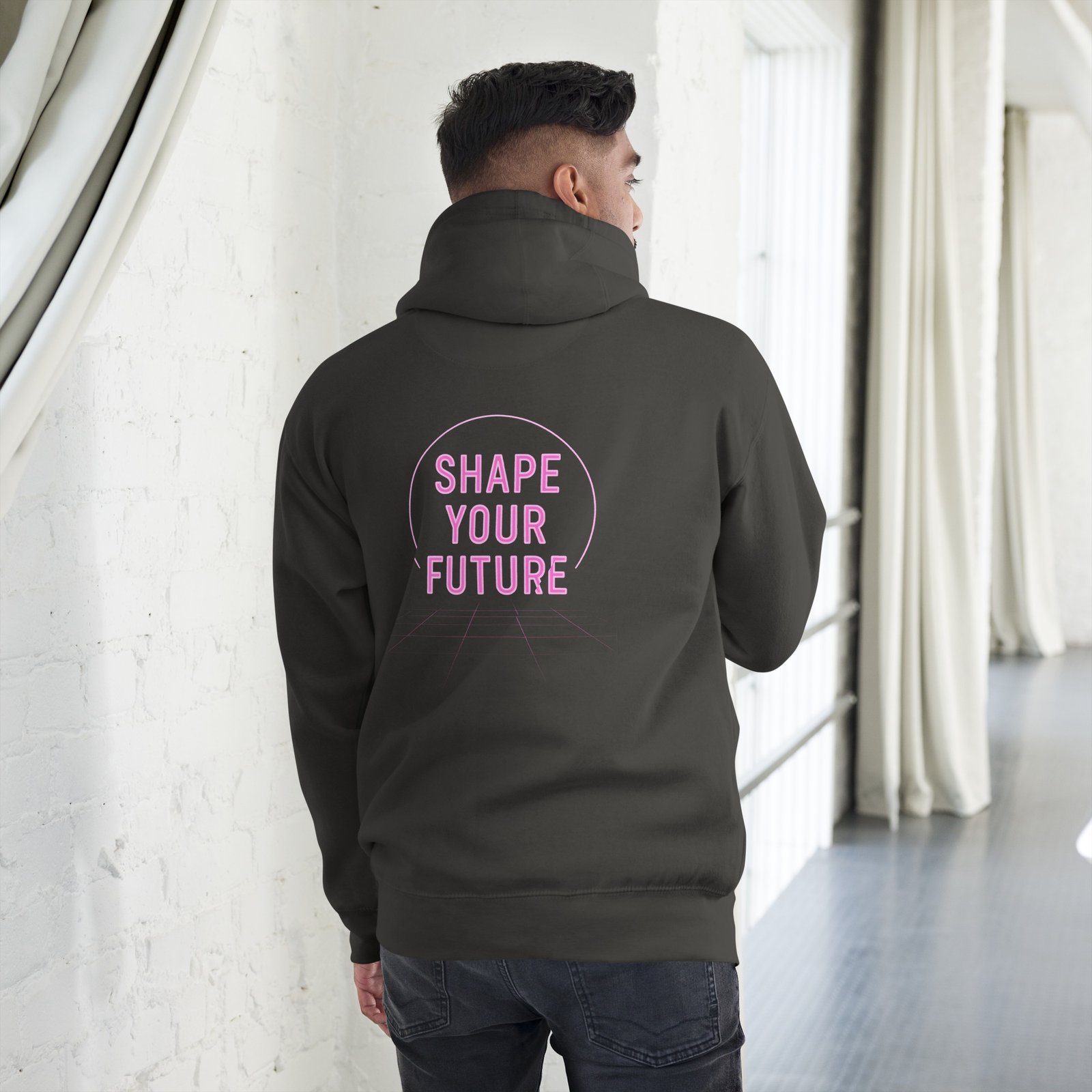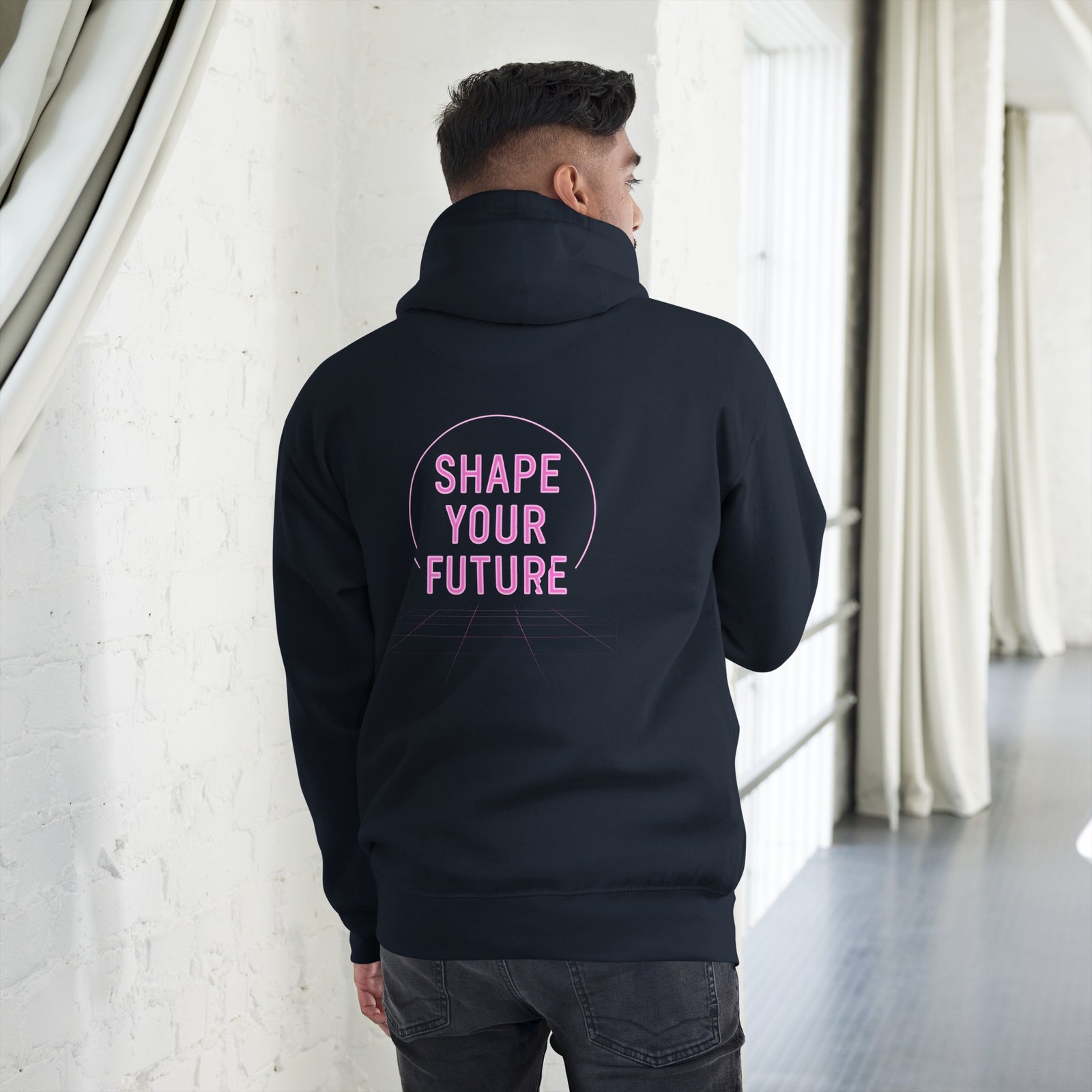 neon hoodie, futuristic hoodie, motivational apparel, AI streetwear, Allegorics merch, cyberpunk fashion, inspirational hoodie, shape your future hoodie, Allegorics, ShapeYourFuture, NeonGlow, MotivationalWear, FuturisticStyle, AIStorytelling.